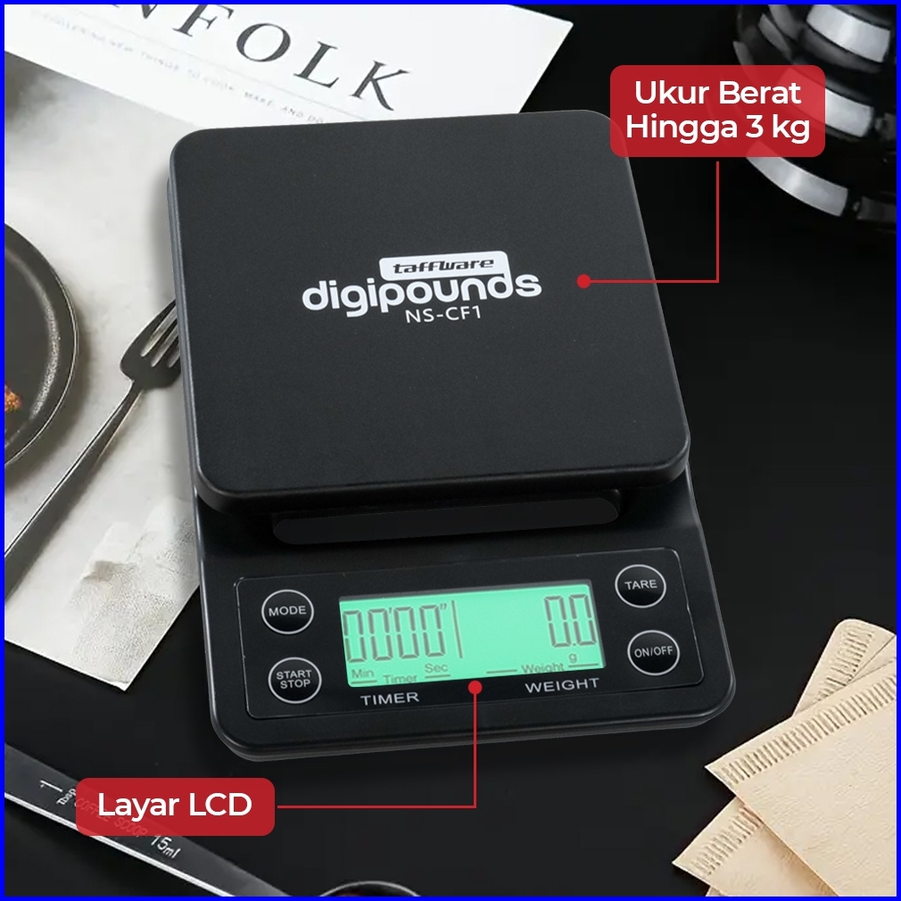 Taffware Digipounds Timbangan Dapur 3kg 0.1g Dengan Timer - Ns-cf1