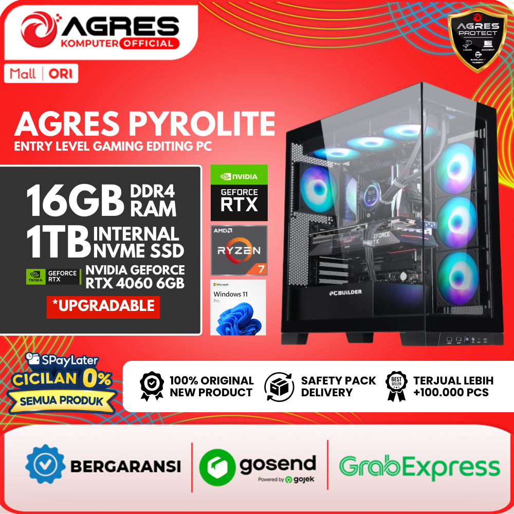 AGRES PYROLITE PC RYZEN 7 5700X RTX 4060 8GB/ RAM 16GB SSD 1TB + WINDOWS 11 PRO RAKITAN PC GAMING