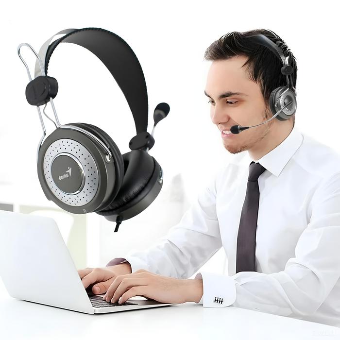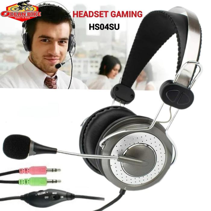 HEADPHONE HEADSET GAMING GENIUS HS04SU MICROPHONE MIC NOICE CANCELLING JACK 3.5MM KOMPUTER HP PC