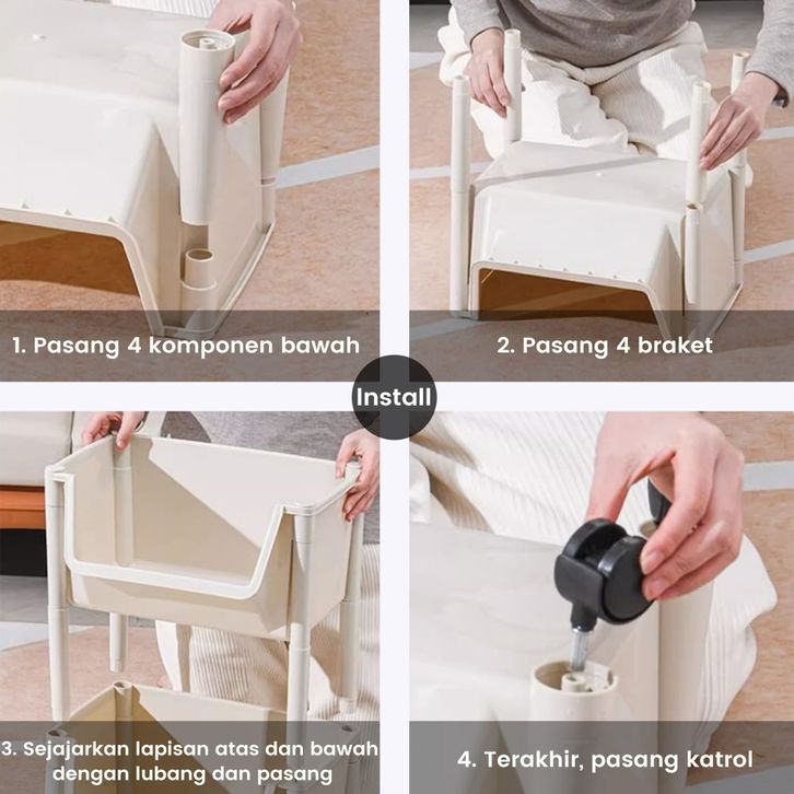 Rak Buku Serbaguna Minimalis Lemari Book Trolley Susun Bahan Plastik Portabel Roda Kekinian