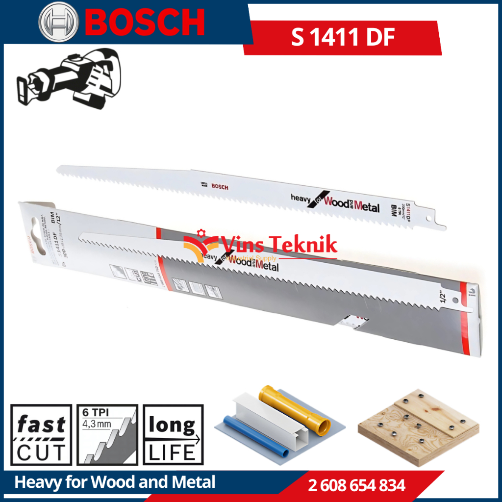 Reciprocating saw blade S1411DF Mata Gergaji Sabresaw Reciprocuting Saw Kayu Besi Heavy Duty BOSCH S 1411 DF