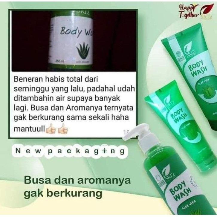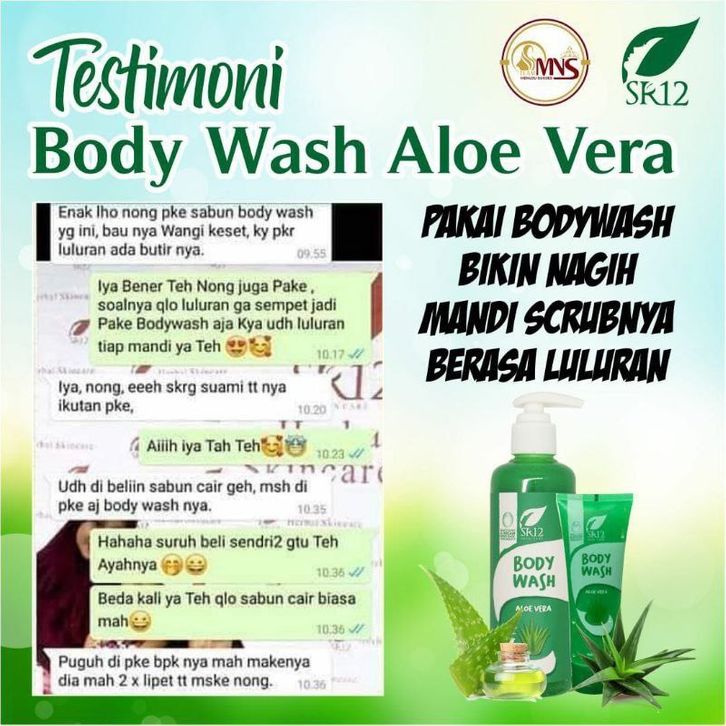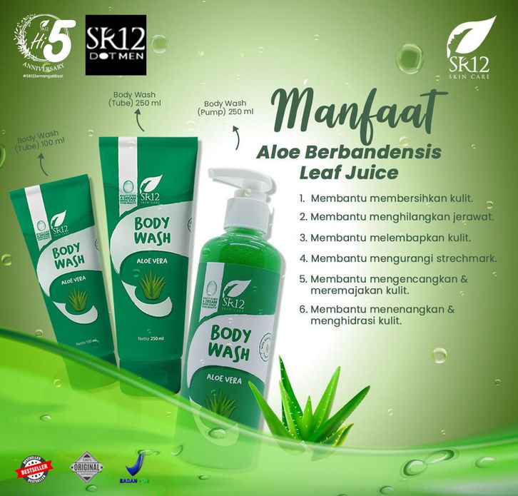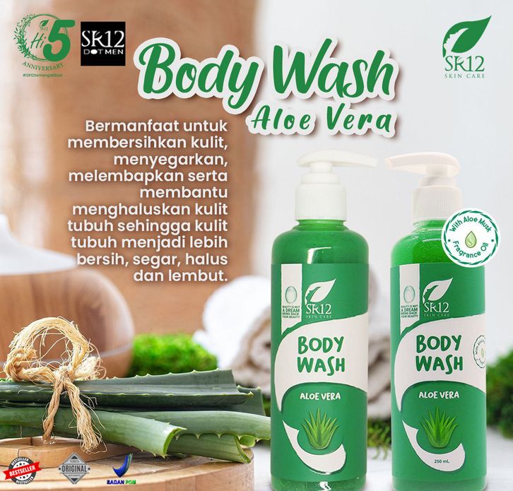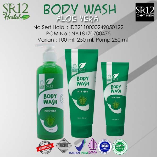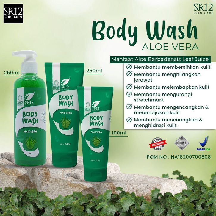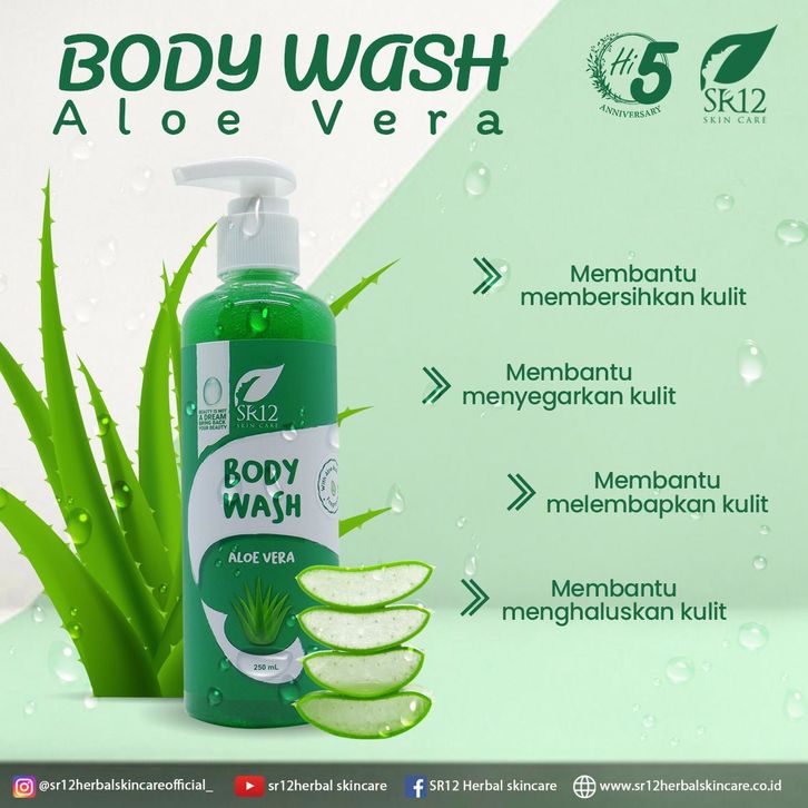 Body Wash Aloe Vera SR12 membersihkan kulit, menyegarkan kulit, melembapkan serta membantu menghaluskan kulit tubuh