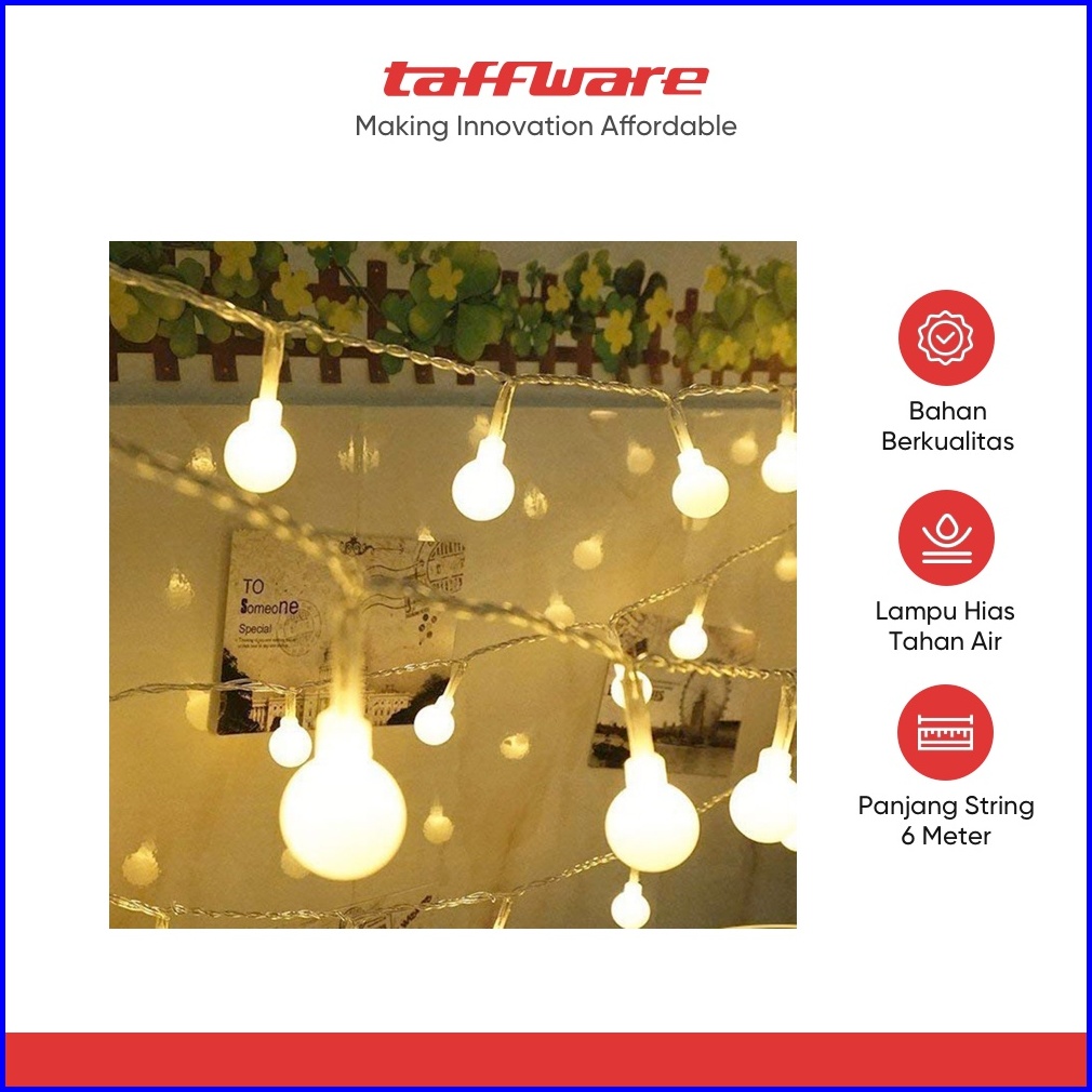 Taffled Lampu Hias Sperical Light String Portable Warm White 40 Led 6m - Zyd0931 - Warm White