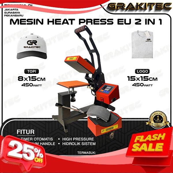 [Mall] Mesin Press Sablon Mini EU Logo Label 15x15 cm & Press Sablon Topi Premium -2in1 CAP & LOGO HEAT PRESS untuk pres