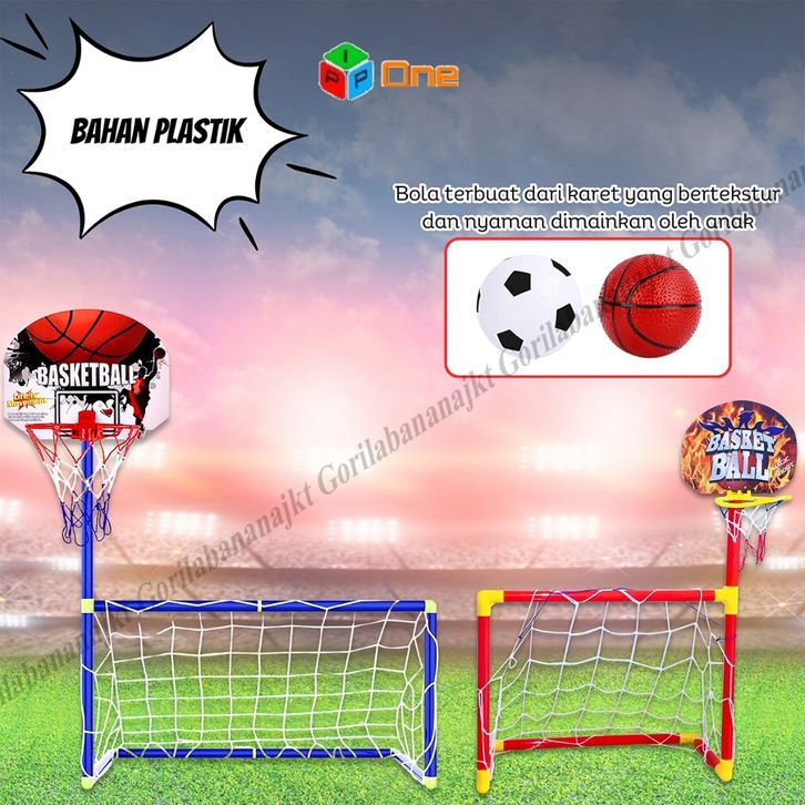 TERLARIS Mainan Anak Gawang Sepak Bola dan Ring Basket Sport 2in1 Besar Footbal basket Soccer & Football ohemnh