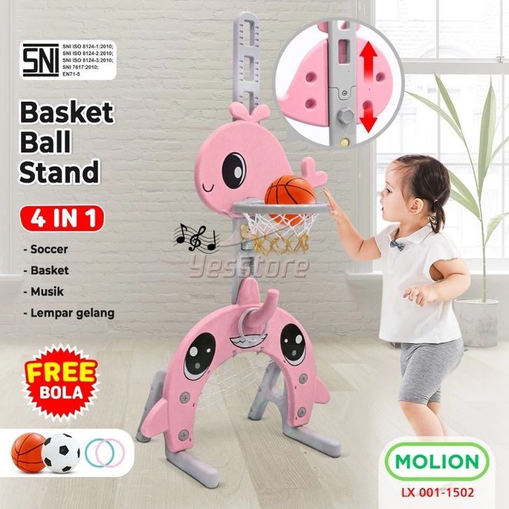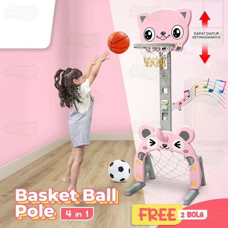 TERLAKU Didibear MOLION Mainan Bola Basket Anak 4in1 Gawang Tiang Ring Ketangkasan Model Animal Berstandar