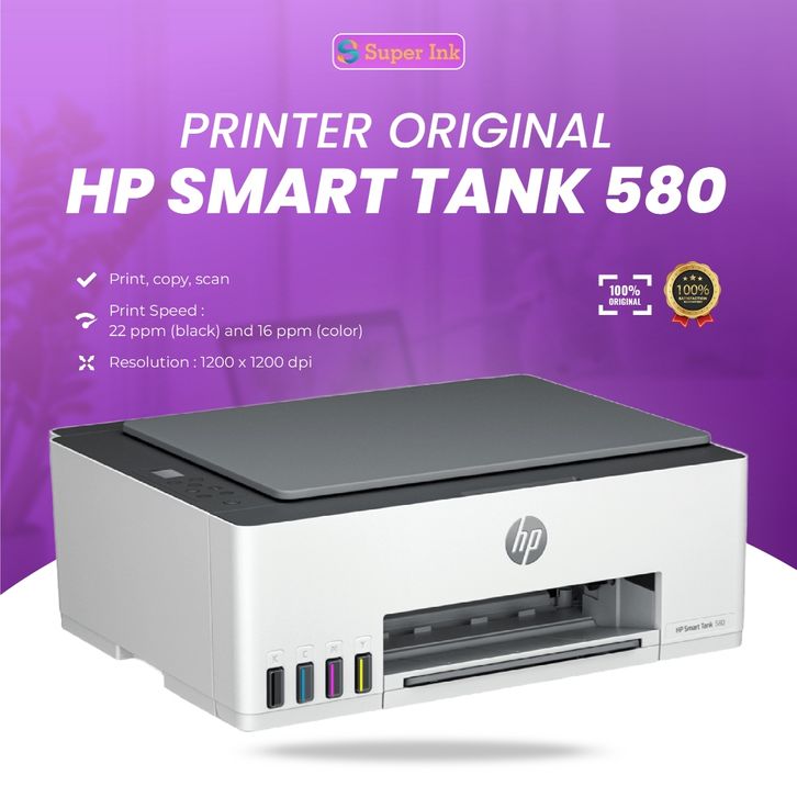 TERLARIS PRINTER HP SMART TANK 580 ALL-IN-ONE PRINTER PRINT-SCAN-COPY-WIFI WIRELESS BERGARANSI ORIGINAL 520