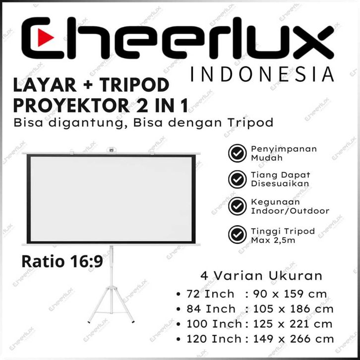 TERLARIS LAYAR PROYEKTOR PLUS TRI2 IN 1 16:9 DAN 4:3 | SCREEN TRIPROJECTOR STANDING 84 INCH 16:9 DAN 4:3