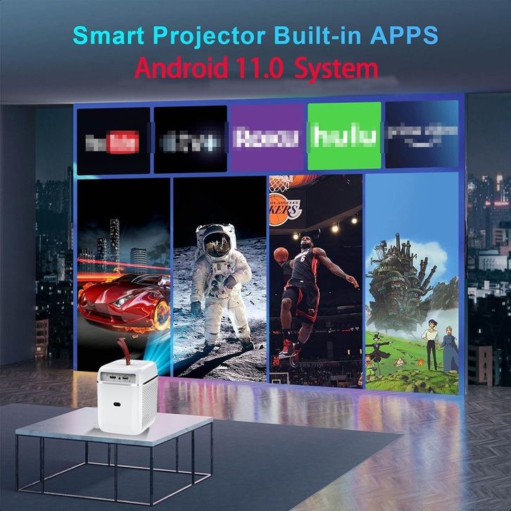 TERLARIS PROYEKTOR T6 PENGIRIMAN MENGANTUNG PENINGKATAN NATIV WI-FI 6 SISTEM ANDROID 1080P 4K HD PEMFOKUSAN KENDALI JARA