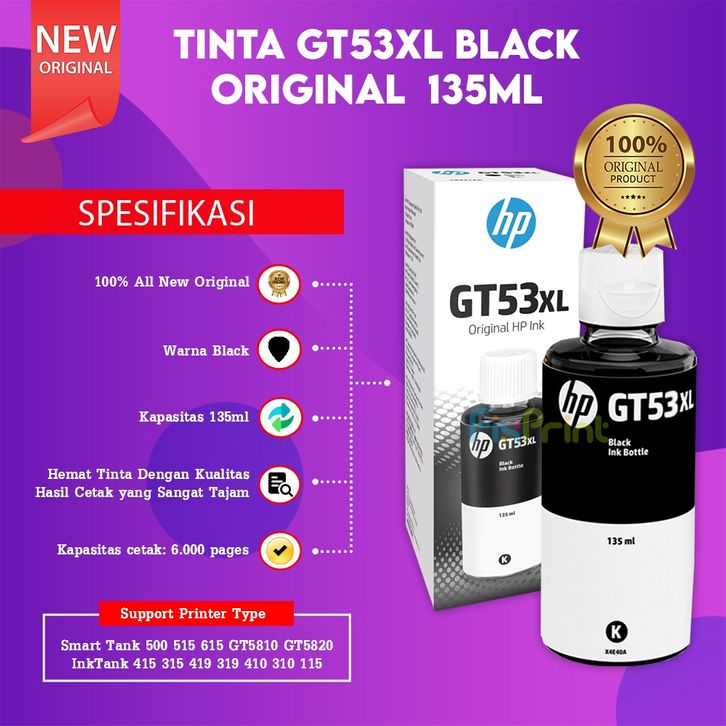 TERLARIS FIXPRINT HP TINTA GT53XL 135-ML BLACK ORIGINAL INK BOTTLE [1VV21AA]