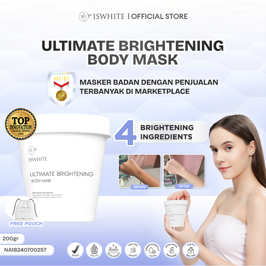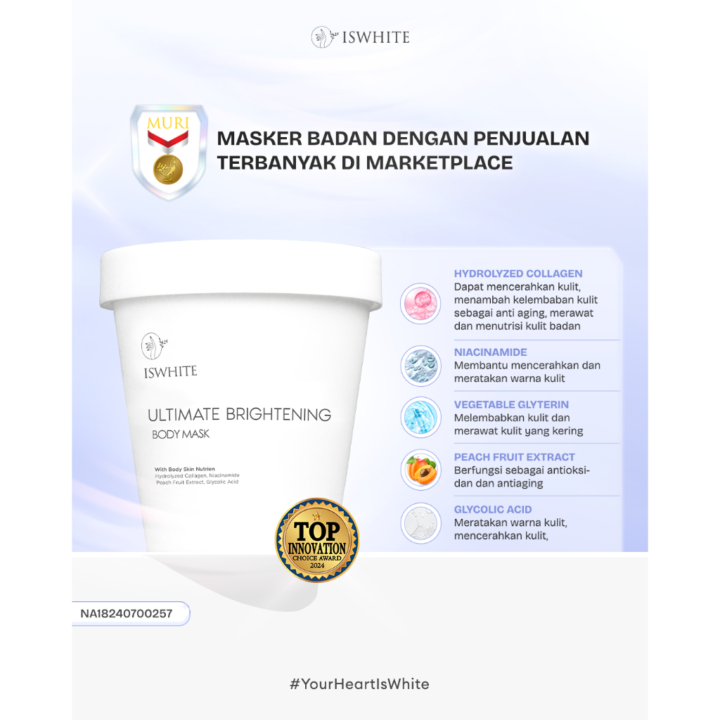 ISWHITE Masker Badan (Body Mask Brightening Ultimate) - Pencerah Badan Seluruh Tubuh - Menghilangkan Bekas Luka
