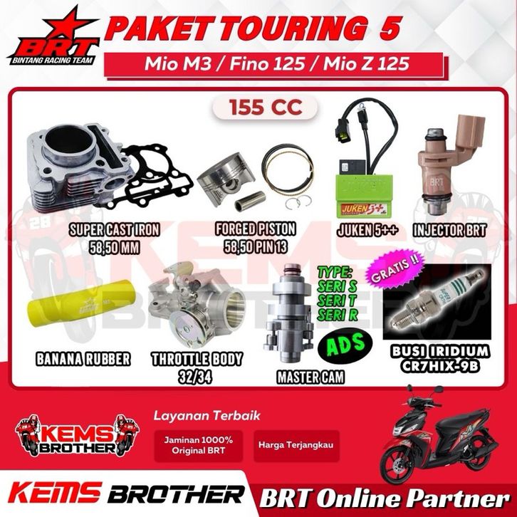 PAKET BRT TOURING 5 BLOK CASTING IRON BOREUP 155CC GRATIS BUSI RACING MIO M3 MIOZ125 FINO125 SOULGT125