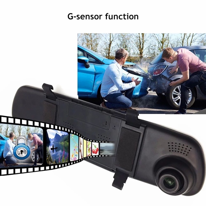 Dash Cam Car DVR Camera 4.3/4.5 Inch Resolusi Touch Screen Rearview Mirror Full HD 1080P Night Vision Stream Media Dual