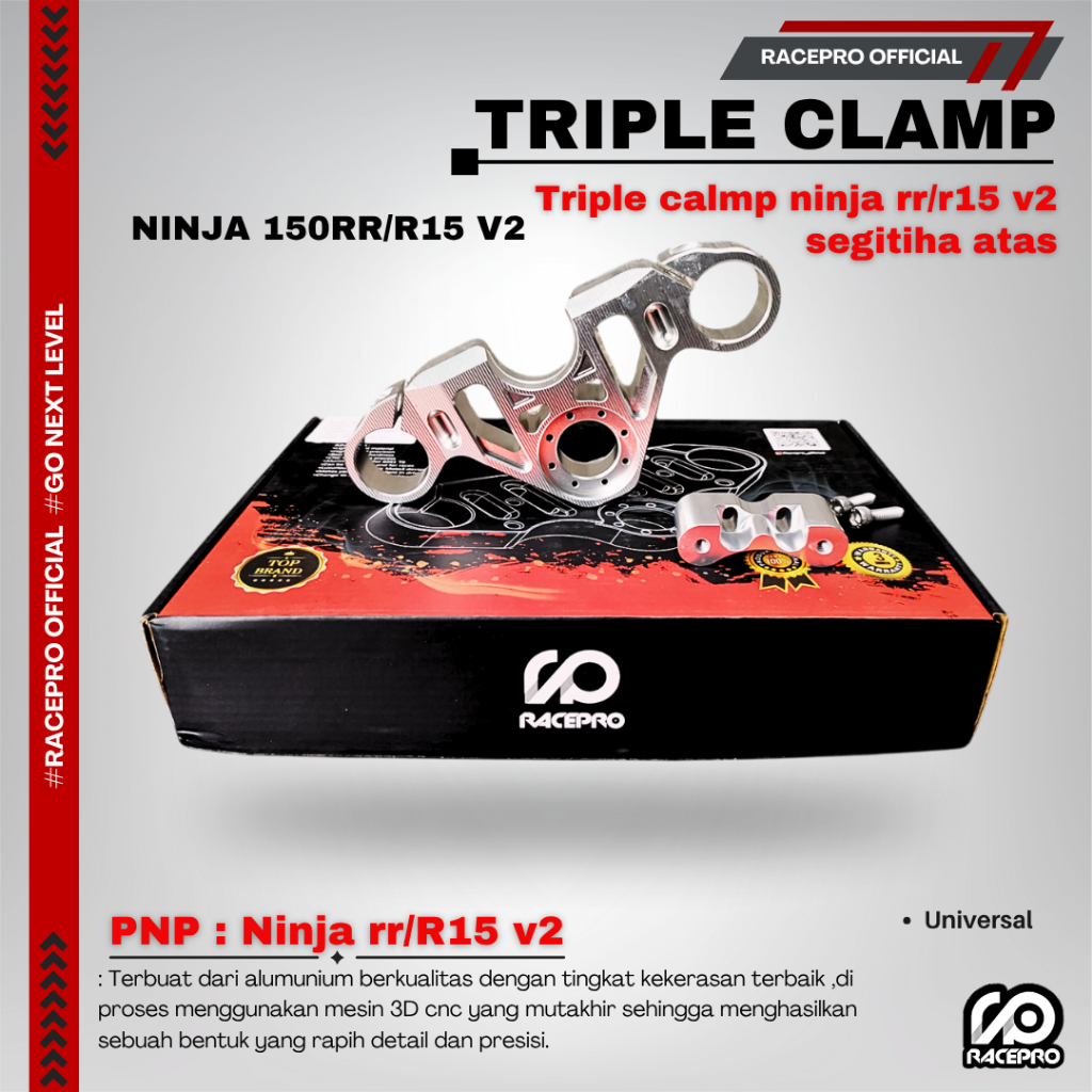 TRIPLE CLAMP NINJA 150RR & R15 V2 SEGITIGA ATAS RACEPRO FOR NINJA RR & R15 V2 TRIPLE CLAMP RACEPRO