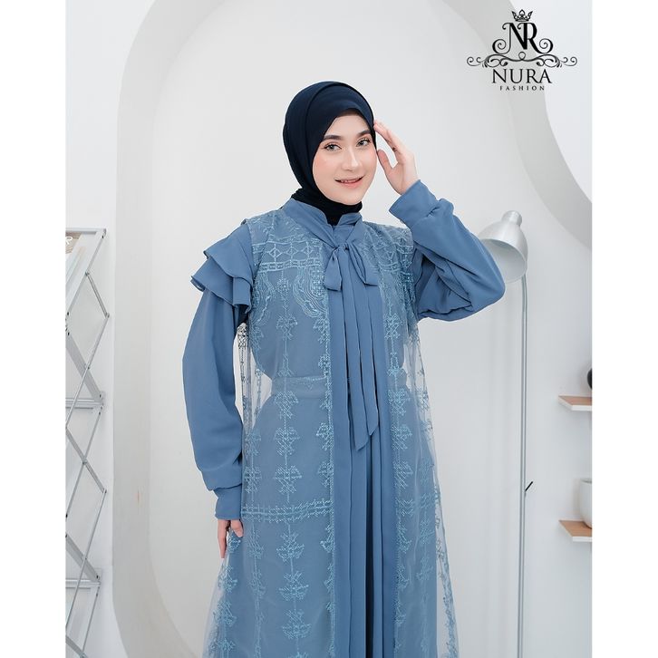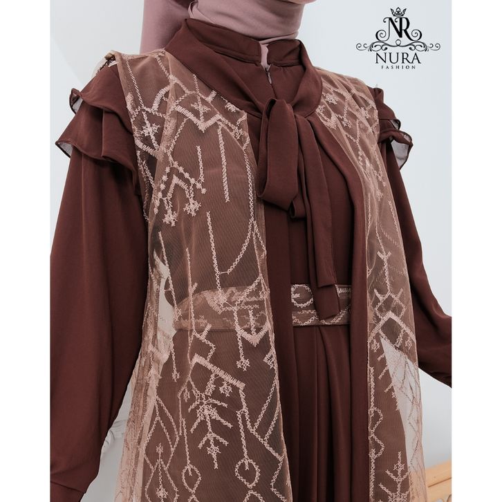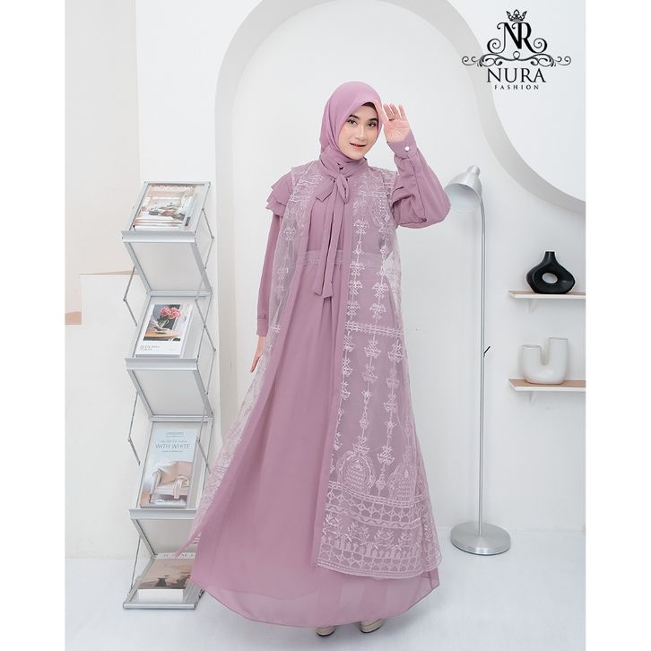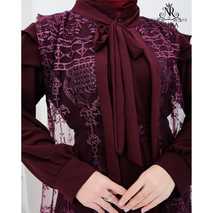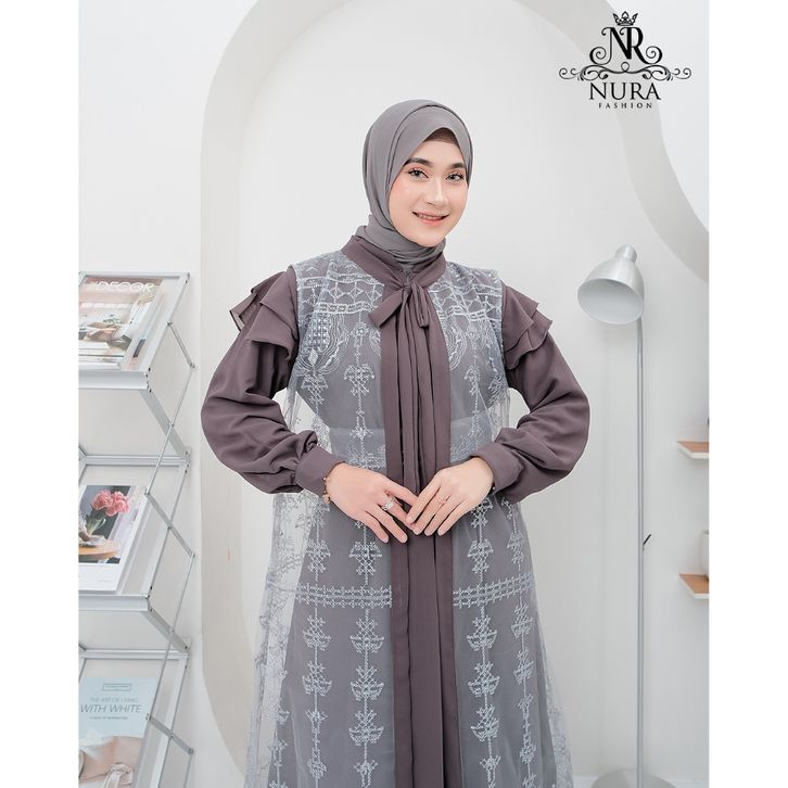 nr gamis brukat dress creuty full puring aplikasi brukat mewah outer terpisah gamis lebaran