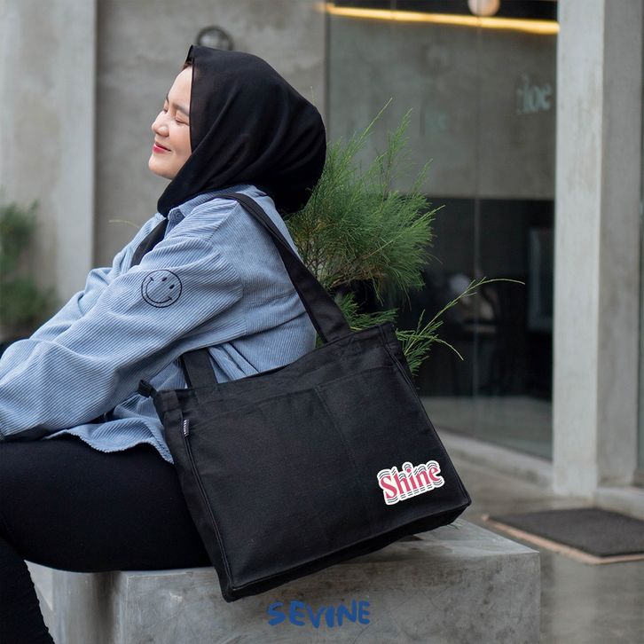 Totebag Kanvas Rebecca Tas Wanita Tote Bag Kuliah Sekolah Sekat Resleting Laptop Hitam Elegan Aesthetic WV