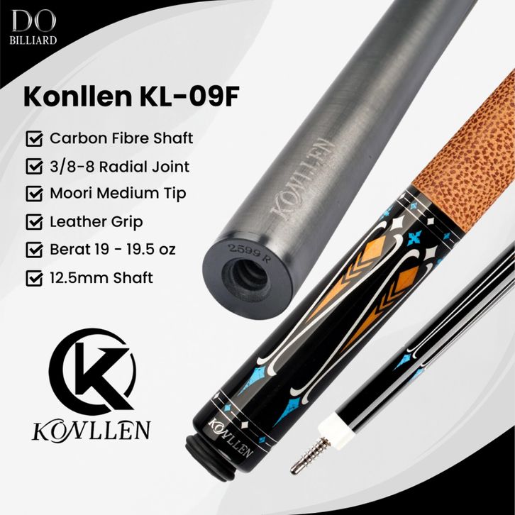 Stick Billiard KONLLEN KL-09F Carbon Cue Leather Grip Low Deflection / Stick Konllen KL-09F