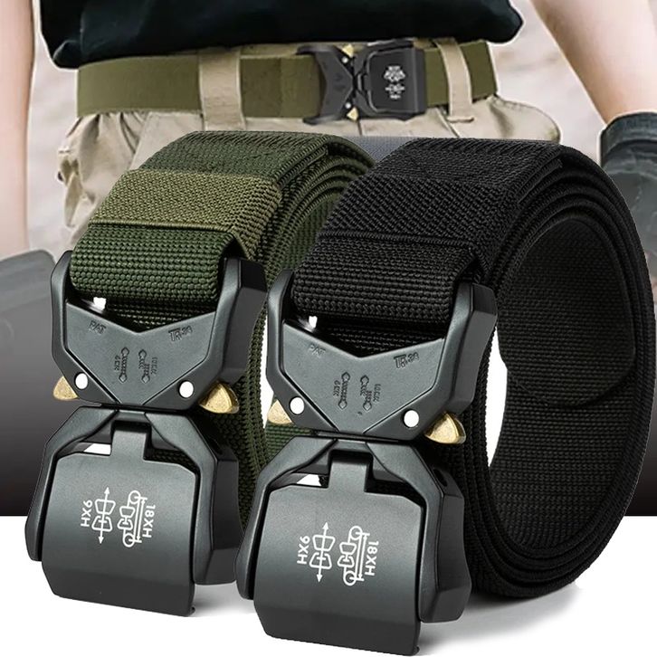 ikat pinggang pria kulit asli Ikat Pinggang Pria Tali Canvas Nilon Metal Gesper Sabuk Cowok Tactical Military Belt Quic