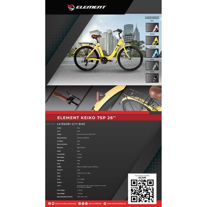 Sepeda Mini Citybike Element KEIKO 26- frame Alloy 7 Speed keranjang dan Bagasi