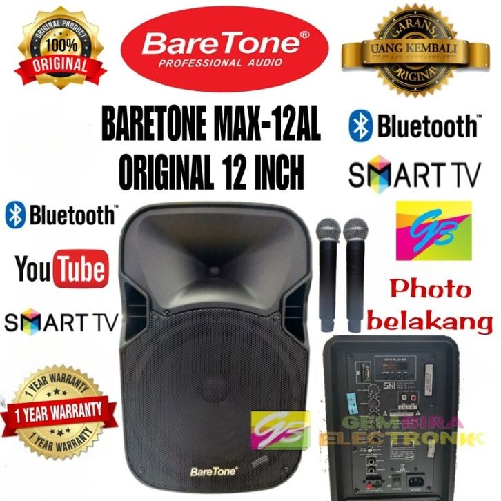 Speaker Portable Baretone 12 inch Bluetooth Original Speker