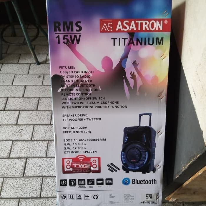 SPEAKER PORTABLE ASATRON HT-8873 TITANIUM 15 INCH free 2 mic wireless