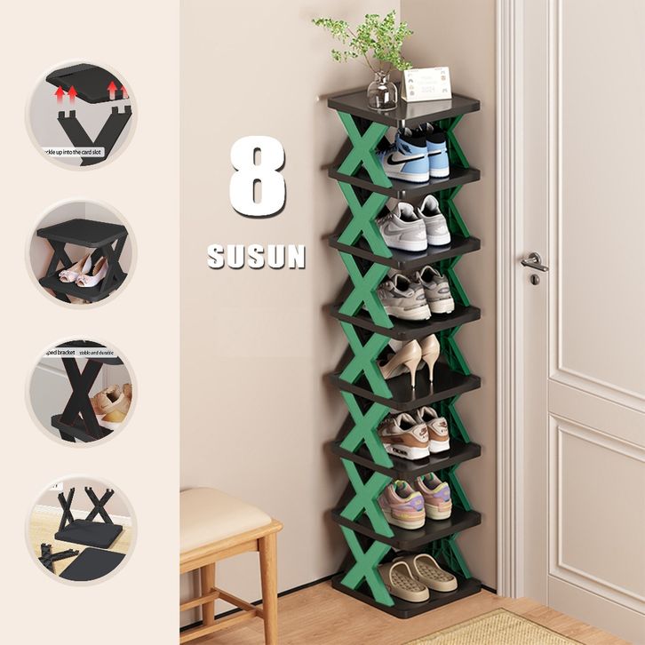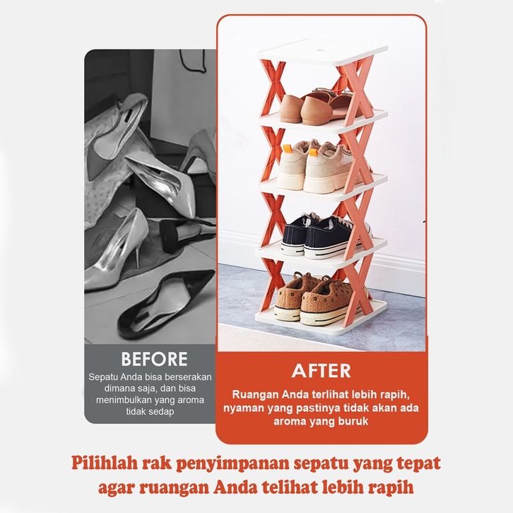 Rak Minimalis Bahan Plastik PP Ukuran Produk 24cmx26cmx56cm / Rak Sepatu Plastik Minimalis 4-8 Susun Tempat Sepatu Sanda