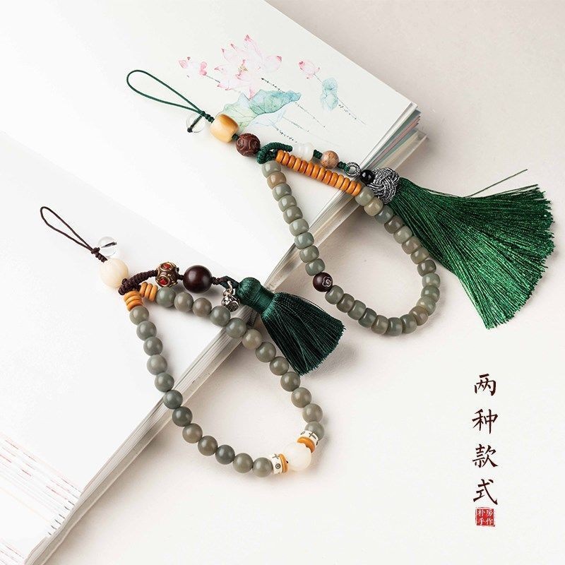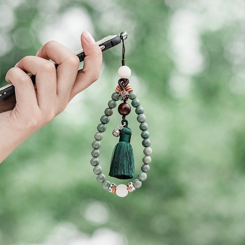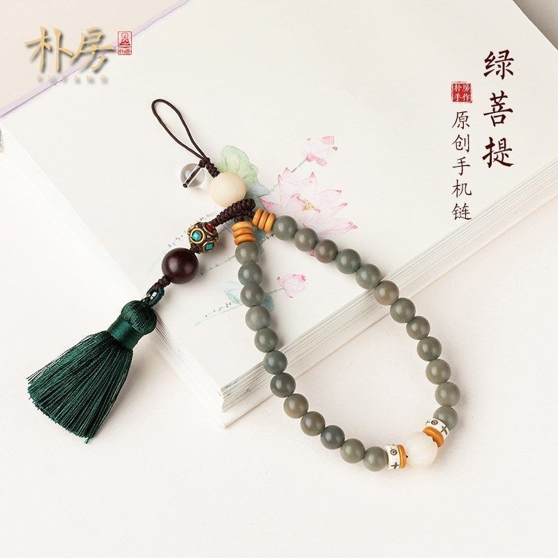 Original Green Bodhi Phone Chain Short Lanyard Wrist Strap Tassel Pendant