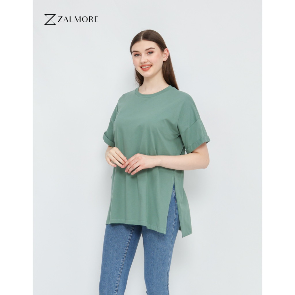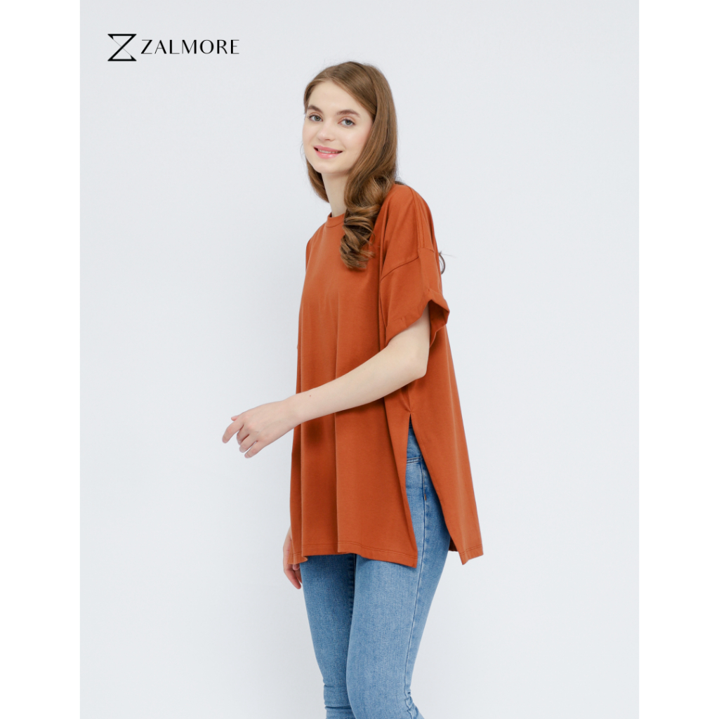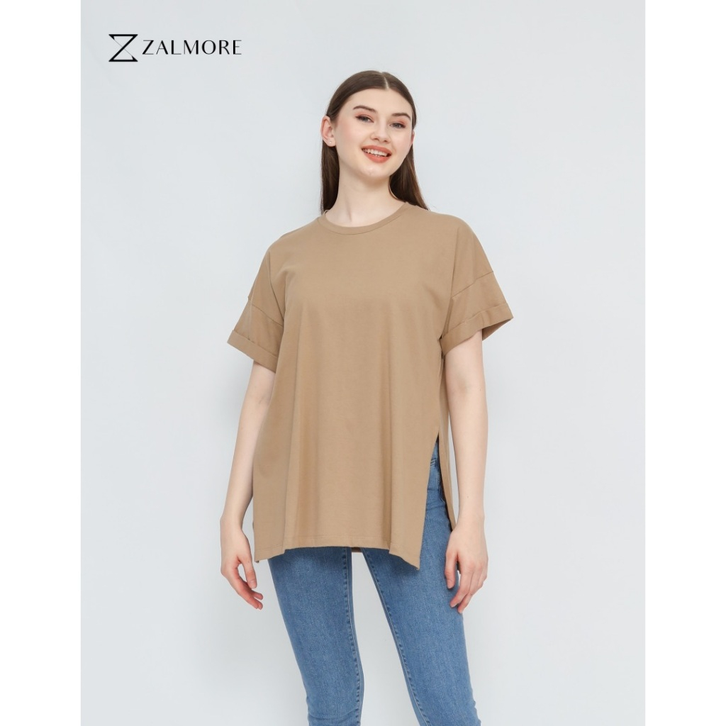ZALMORE OVERSIZE T-SHIRT WITH SLIT PREMIUM COTTON - KAOS OVERSIZE WANITA