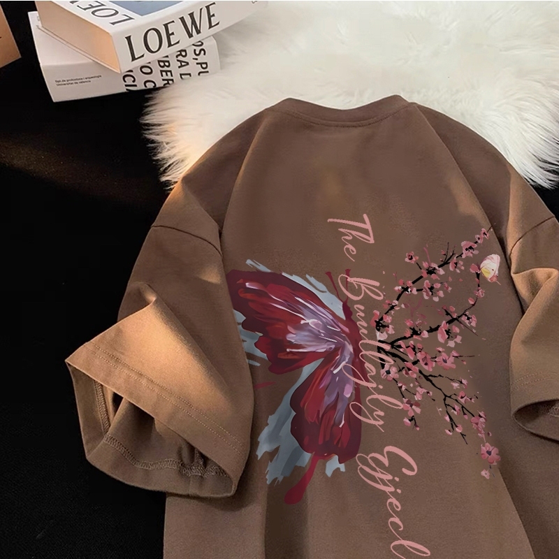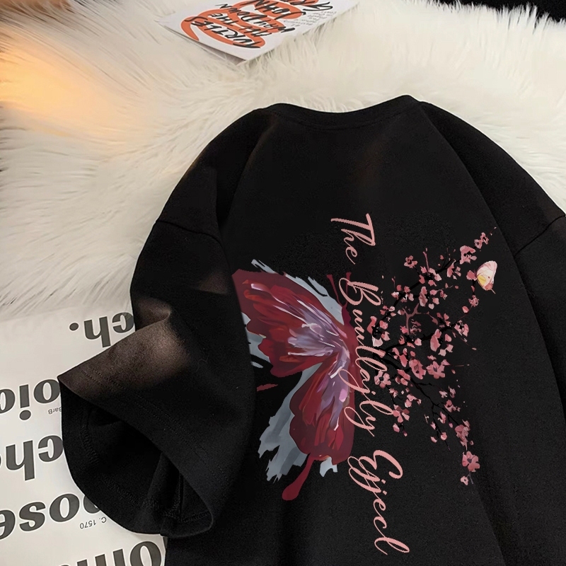 QUISS T-SHIRT LENGAN PENDEK BAJU KAOS OVERSIZE WANITA BAJU |KAUS WANITA KOREA BAJU ATASAN WANITA TERBARU (CETAKAN HURUF KUPU-KUPU)