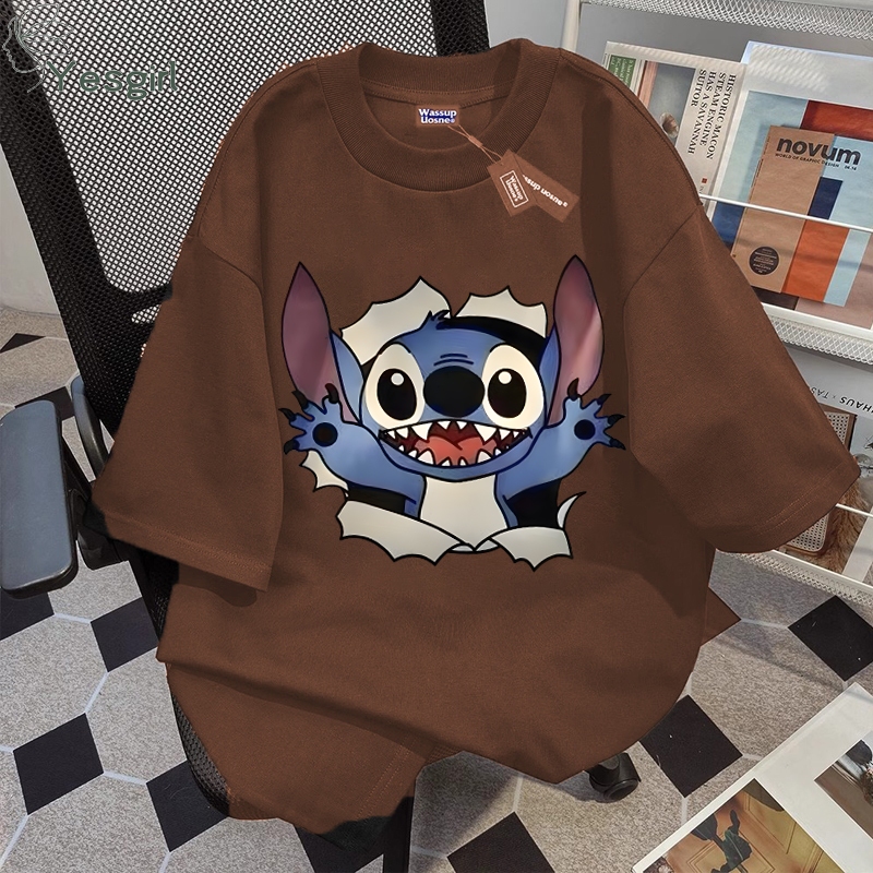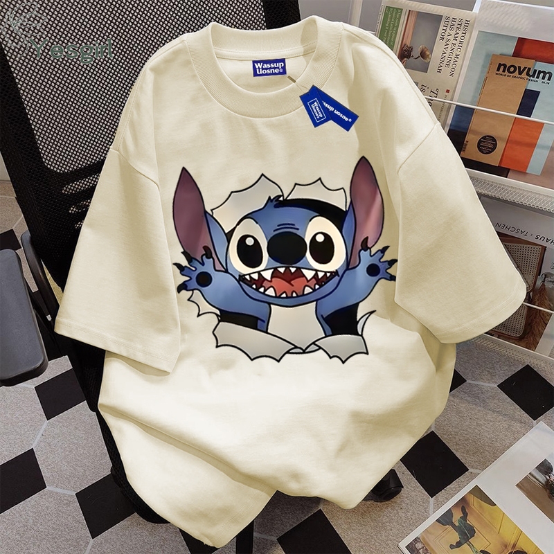 YESGIRL KOREA STYLE CARTOON STITCH PRINT KAOS KASUAL LONGGAR| KAOS OVERSIZE WANITA | FASHION KOREAN STYLE BAJU KAOS OVERSIZE| BAJU ATASAN WANITA TERBARU 100COTTON | KAOS HITAM WANITA | 6.13