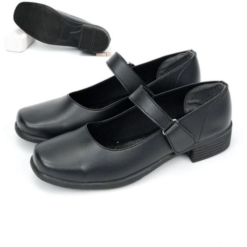 PROMO SEPATU TERLARIS PASKIBRA WANITA HAK 3 CM BAHAN KULIT SINTESIS HITAM SEKOLAH KANTOR