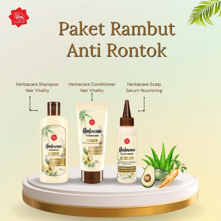 Viva Paket Perawatan Rambut (Anti Rontok, Anti Ketombe, Anti Rusak) Haircare Herbacare Series - Shampoo - Conditioner -