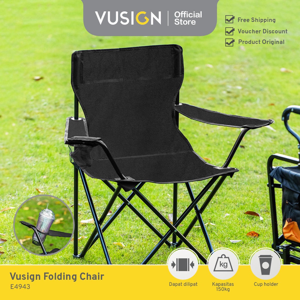 DELI FOLDING CHAIR / KURSI LIPAT CAMPING OUTDOOR MANCING PORTABLE DILENGKAPI CUP HOLDER KAPASITAS 150KG E4943