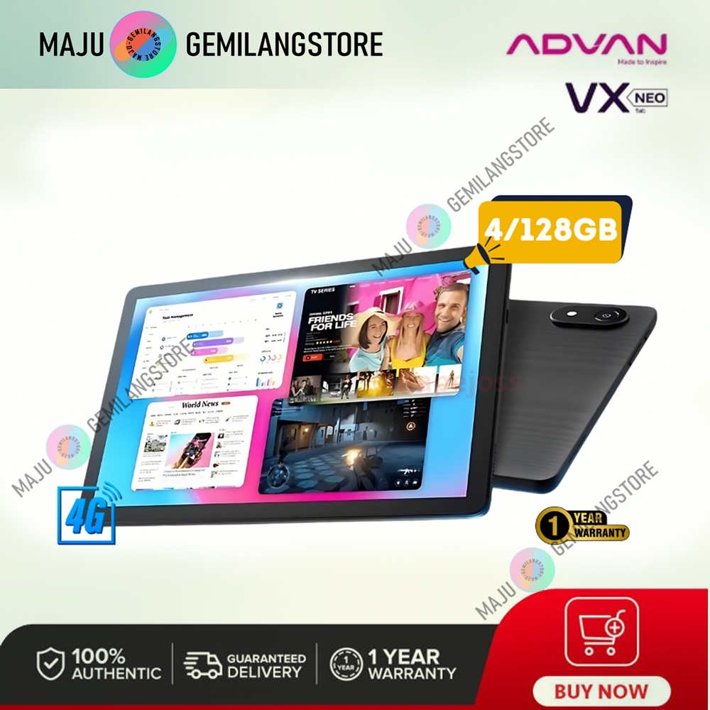 Advan Tab VX Neo 4/128 ( 4GB/ 128GB ) 10.1" IPS Screen , Tablet 10 inch, Android 14, Baterai 6200mAh Dual Sim Card 4G &