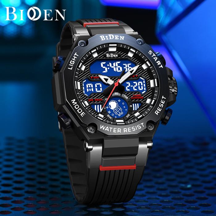 FLASH SALE BIDEN JAM TANGAN PRIA OLAHRAGA OTOMATIS DATE KUARSA ANTI AIR TALI KULIT BLUE2107