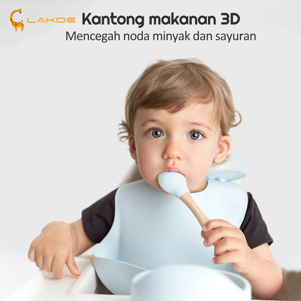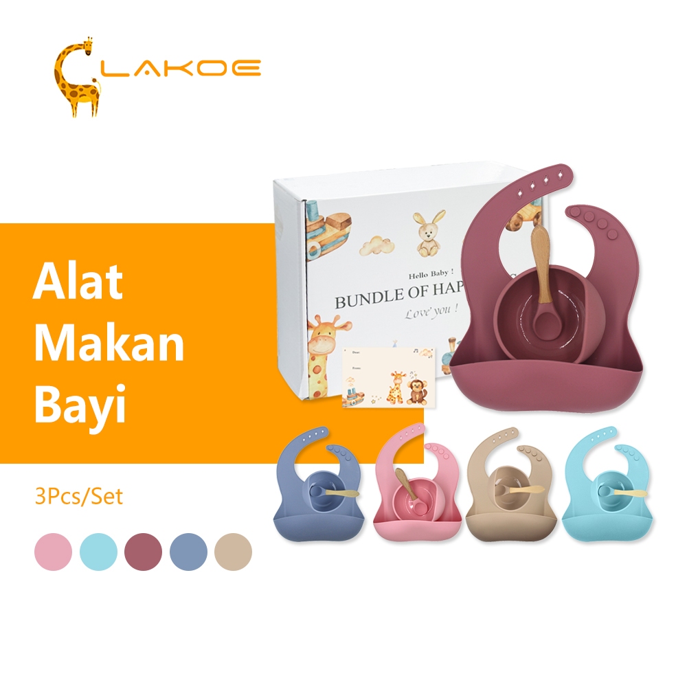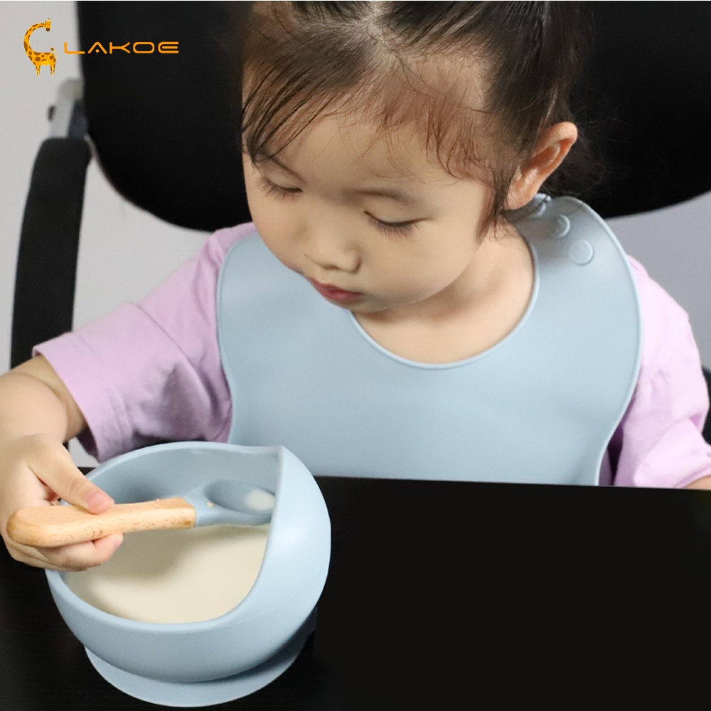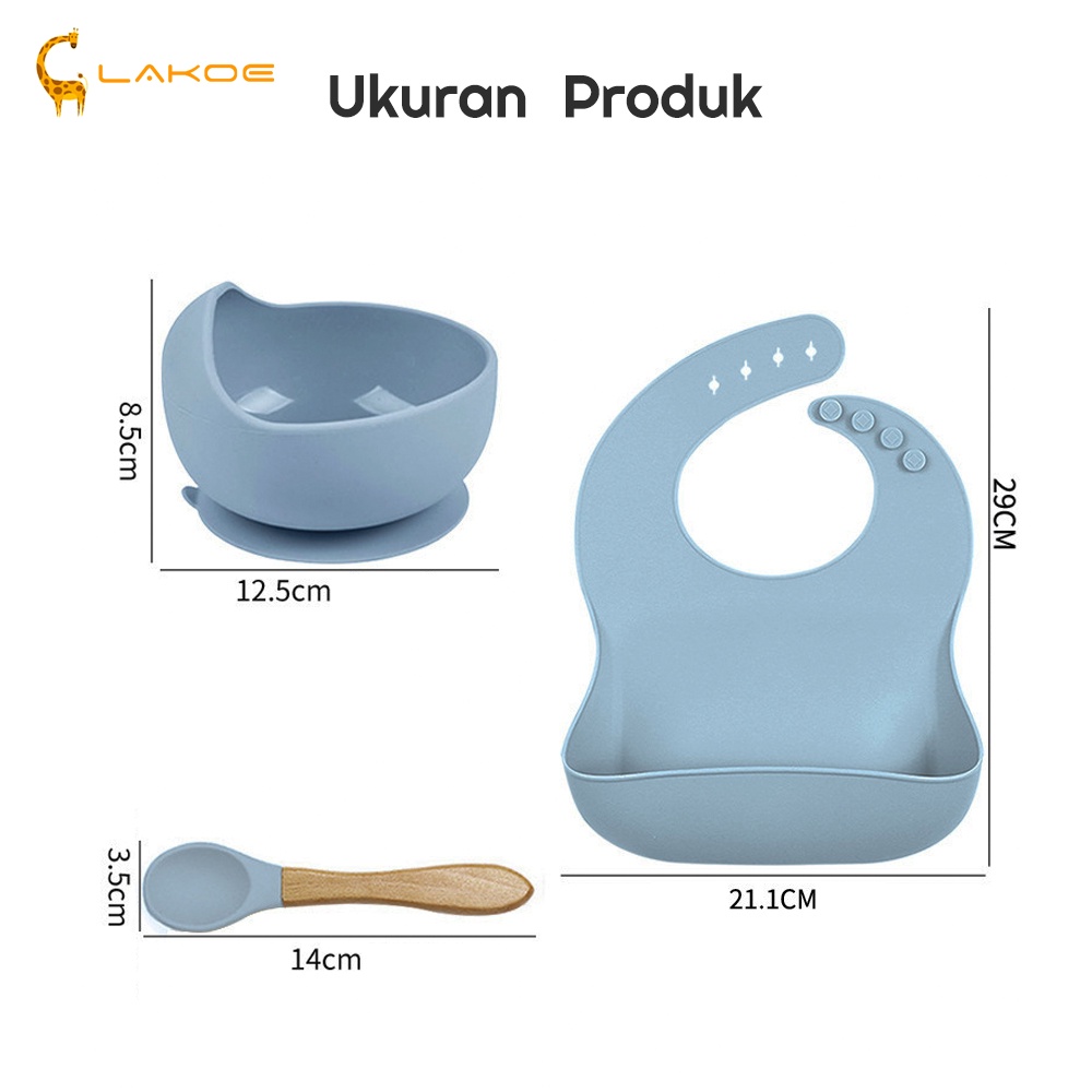 LAKOEOFFICIALMALL CELEMEK MAKAN BAYI MANGKOK SENDOK ANAK BAYI SILIKON PERALATAN MAKAN BAYI