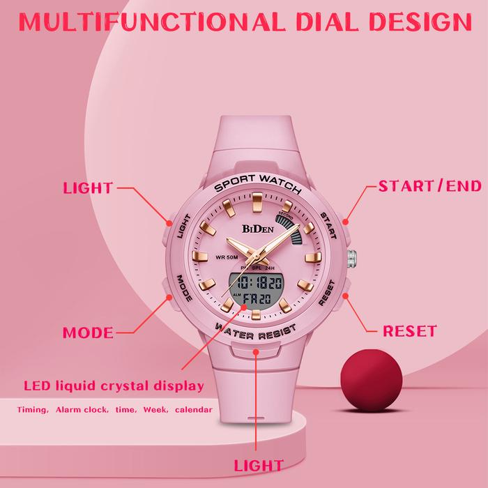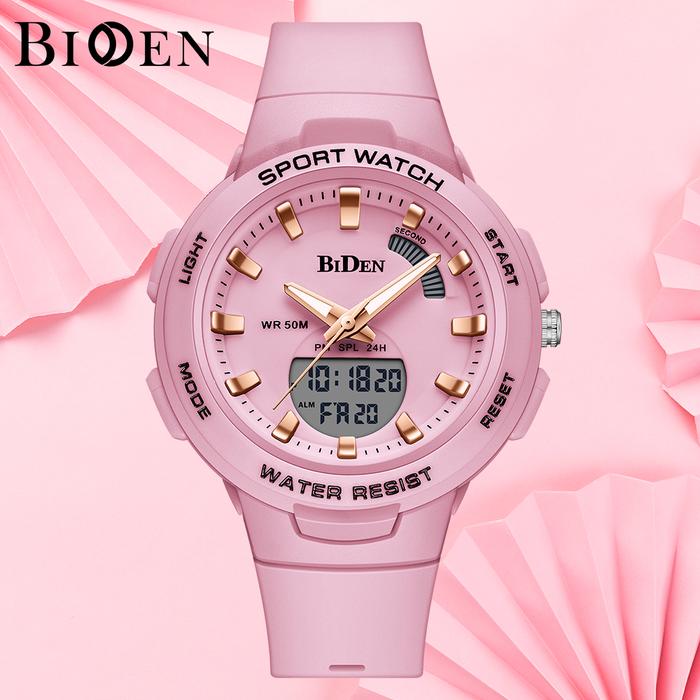 FLASH SALE BIDEN JAM TANGAN WANITA DIGITAL & ANALOG DISPLAY OLAHRAGA SILIKON JAM TANGAN CEWEK PUTIH