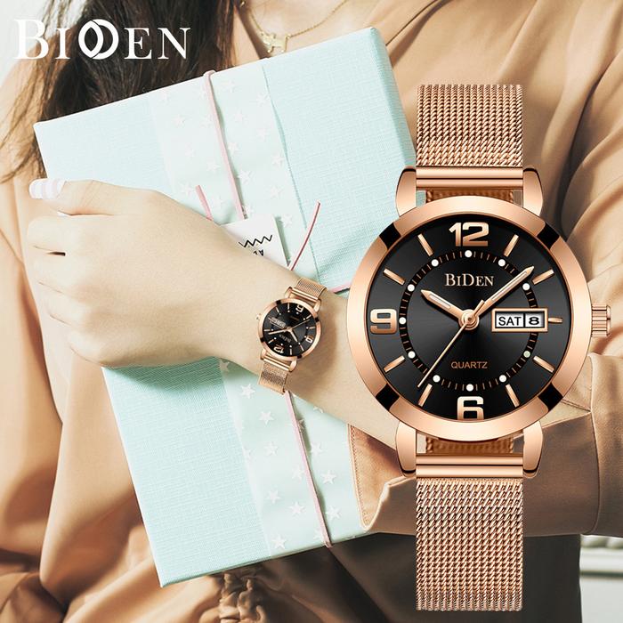 FLASH SALE BIDEN JAM TANGAN WANITA TALI JALA ATAS BISNIS MEWAH JAM 3ATM ANTI AIR MODE JAM TANGAN CEWEK HITAM