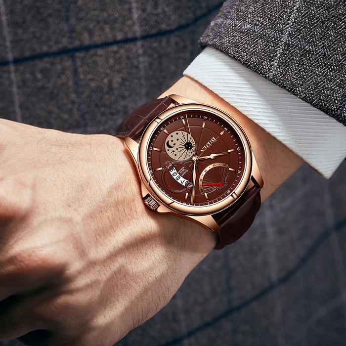 FLASH SALE BIDEN JAM TANGAN PRIA CALENDAR ANTI AIR PRIA KLASIK BISNIS TALI KULIT COKELAT