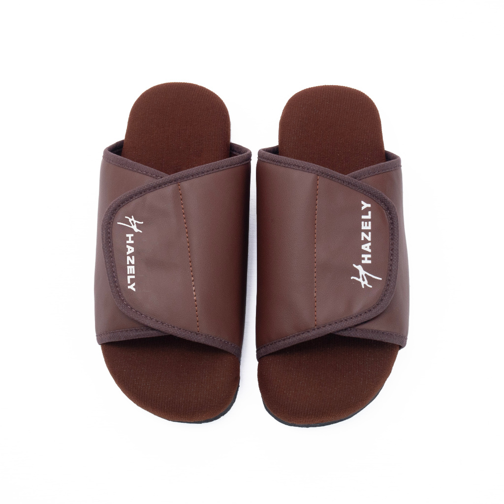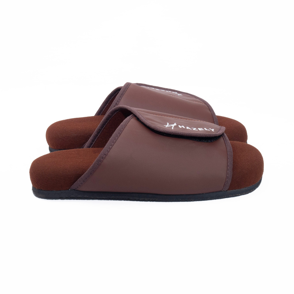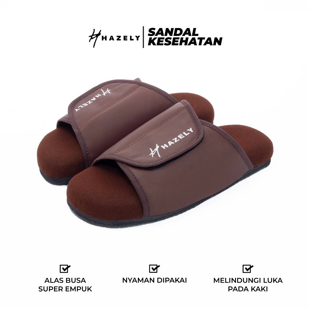 SANDAL KESEHATAN DIABETES SLOP VELCRO SUPER EMPUK - COKLAT TUA - HAZELY INDONESIA