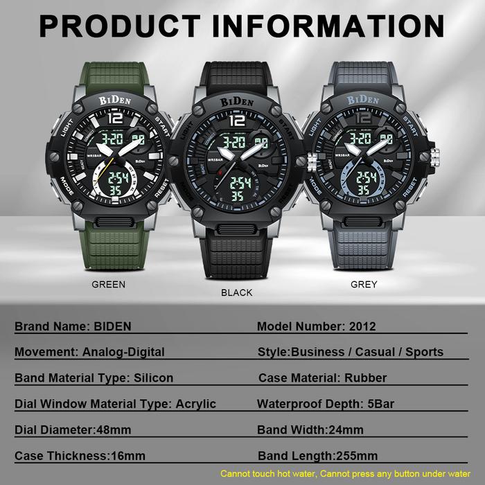 FLASH SALE BIDEN JAM TANGAN PRIA OLAHRAGA DIGITAL&ANALOG TALI SILIKON ANTI AIR BLACK2012