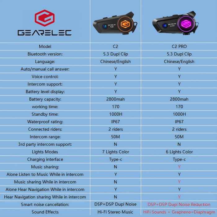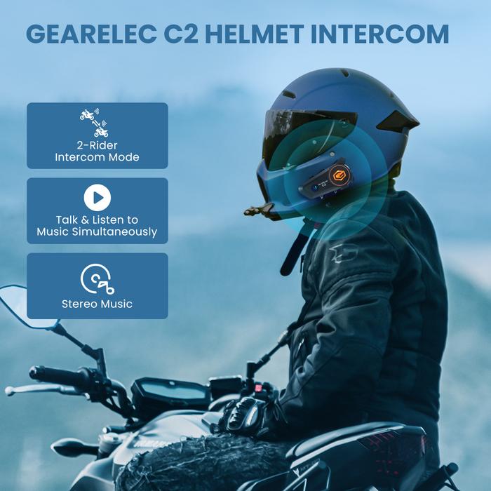 GEARELEC C2 Helm Sepeda Motor 5.3 Headset Intercom Bluetooth 50M 2-Rider IP67 Tahan Air Sistem