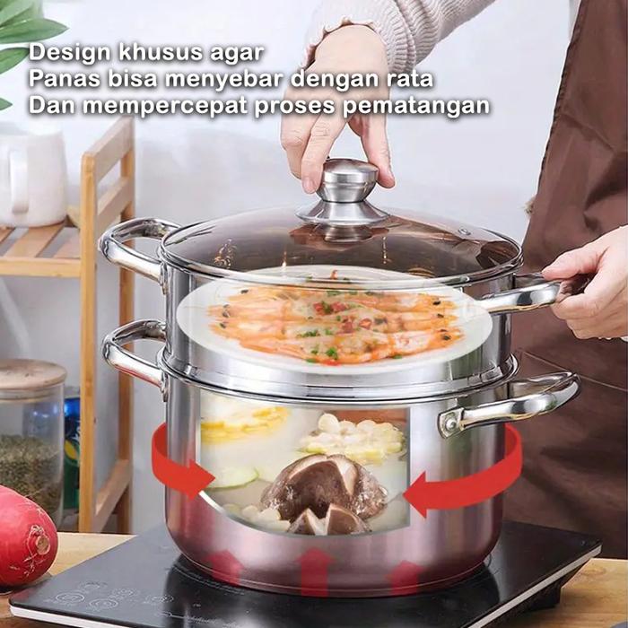 [8.8 SALE] TEXANIA Panci Kukusan Serbaguna Set Dandang dan Kukusan 2 Susun Full Stainless Steel 24cm Kitchenware