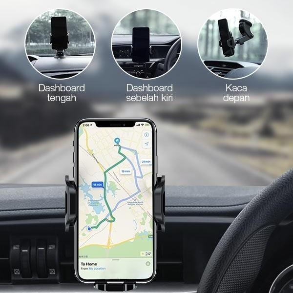 ROBOT Car Holder Mobil Dudukan HP Handphone Stand RT-CH12 Dashboard Kaca Mount 360 Suction Cup - Hitam