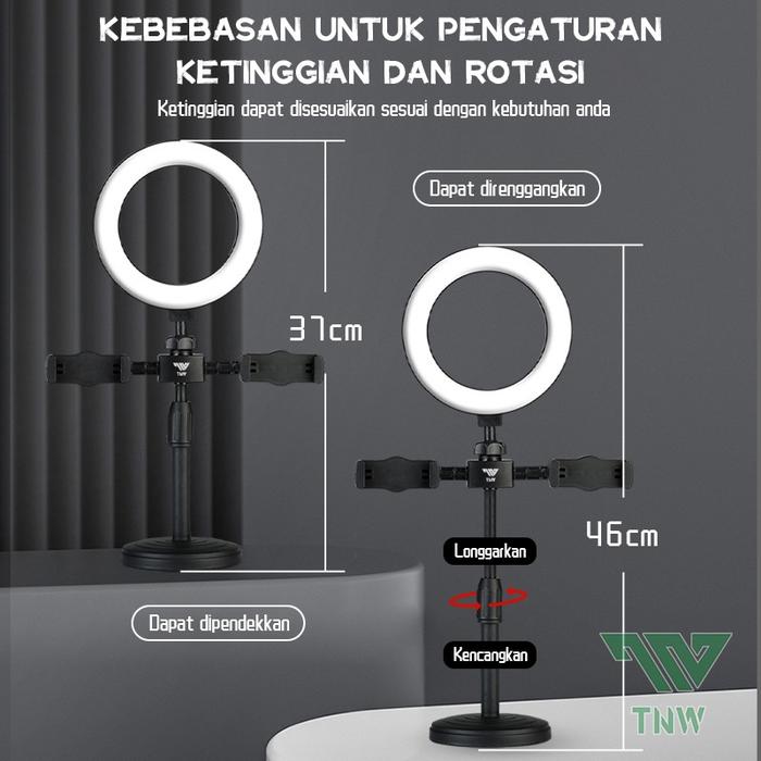 TNW Ring light 16cm+Tri- +2 Holder HP Ring light Tri- Mini Stand HP Live stream Selfie Make Up Vlog Lampu - Hitam