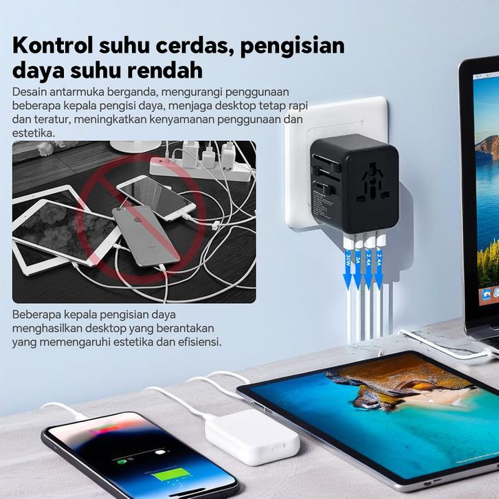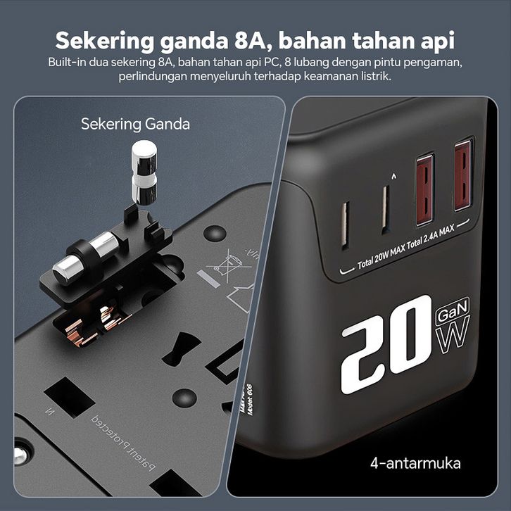 MISENI Universal Travel Adaptor Fast Charging GaN 20W Dual USB Type C US/UK/AU/EU PD 20W QC 18W 2USB 2Type-C Multi-coun