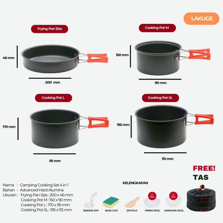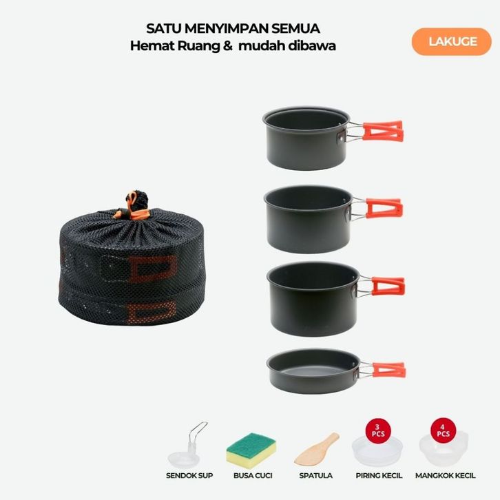 Alat Masak Camping Outdoor Portable Cooking Cookware Pot Set Lengkap 4 In 1