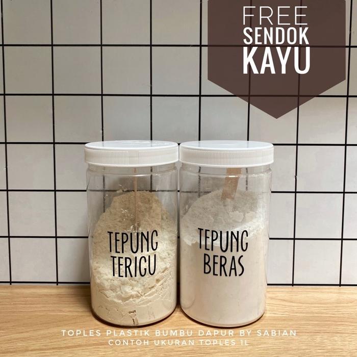 Toples Bumbu Plastik dan Stiker Bumbu Anti Air Kitchenware tempat bumbu - TEPUNG TERIGU 1000 ML - ANTI AIR