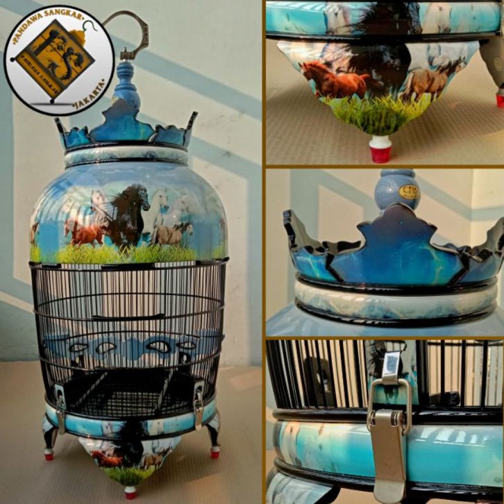SANGKAR/KANDANG PERKUTUT JATI DECAL MOTIF KUDA