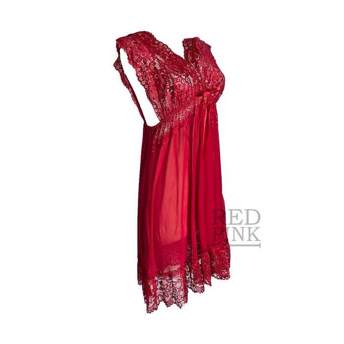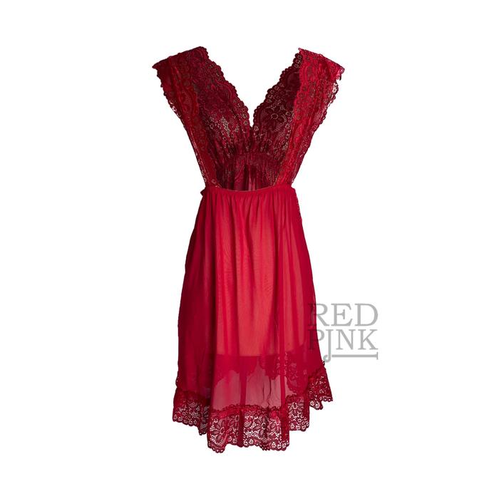 [Red Pink] Dress renda Lingerie Daster Baju Tidur Dewasa LVA Bordir Wanita Satin Rayon Panjang Piyama - MAROON